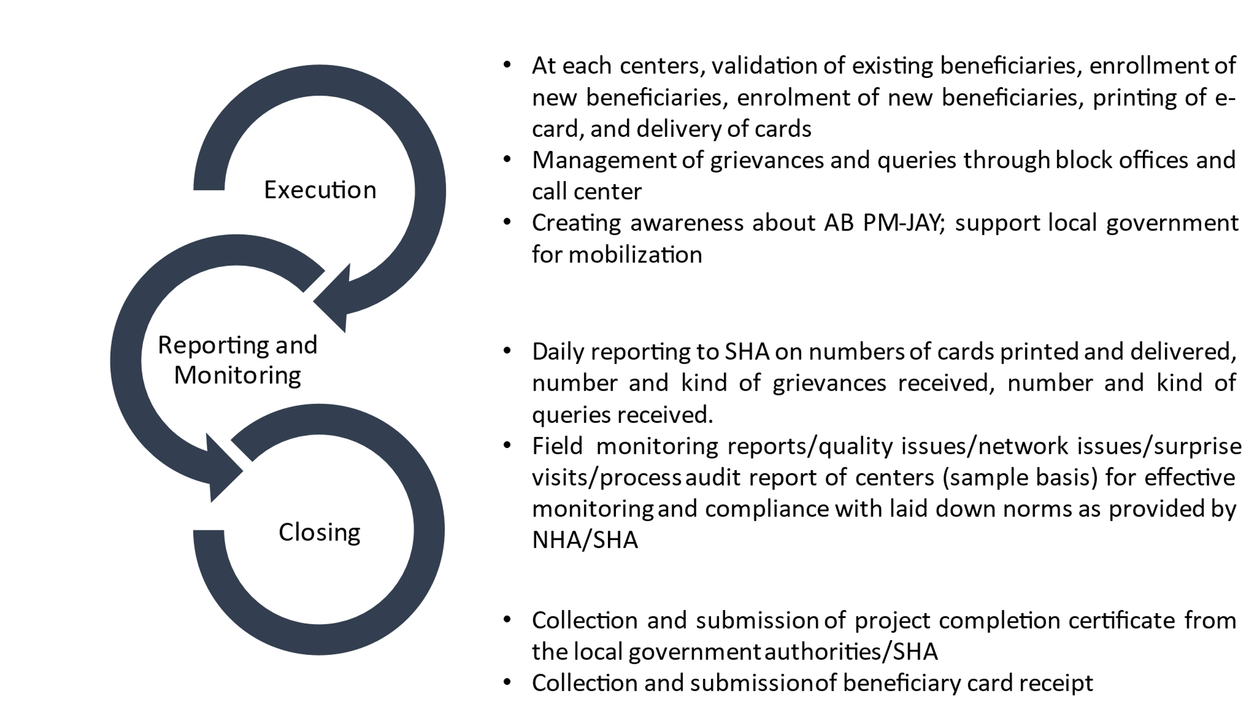 - Managers work is to plan, execute, and monitor quality of the project. They work with the SHA team and district administration for successful implementation of the project.