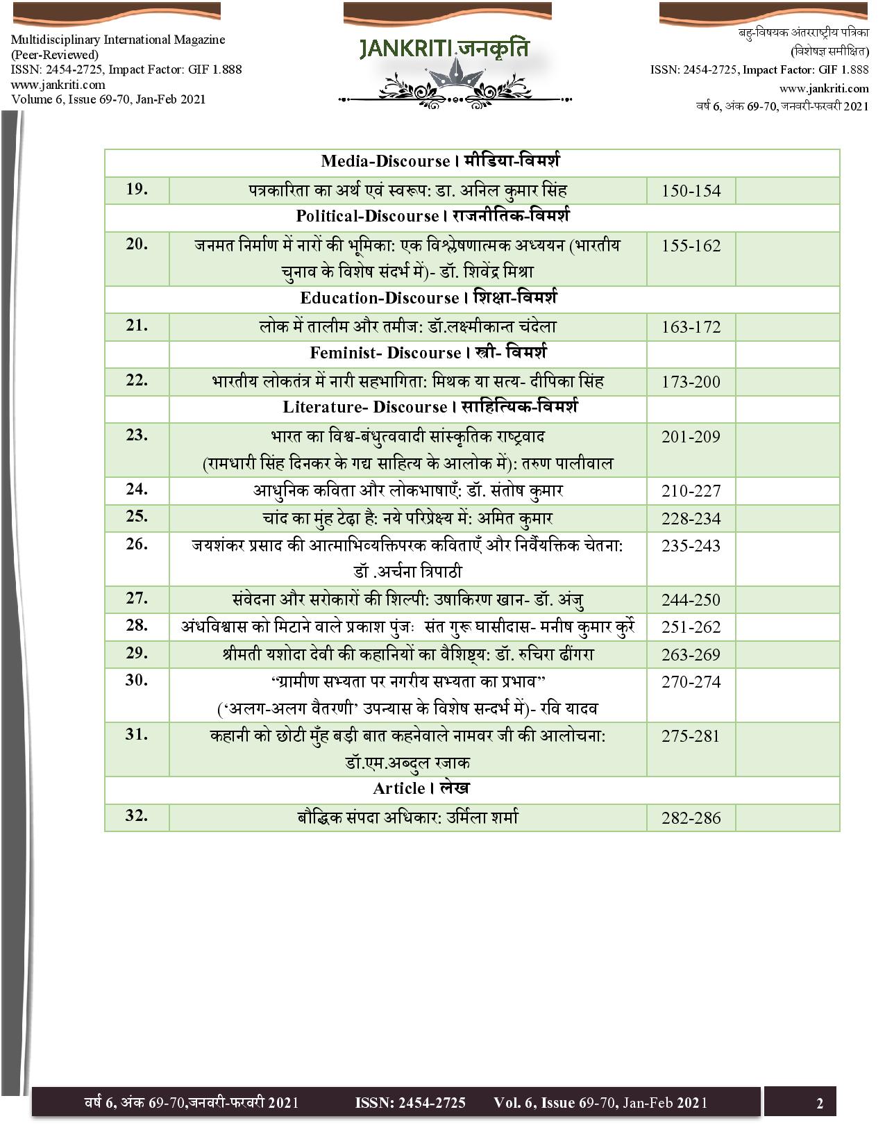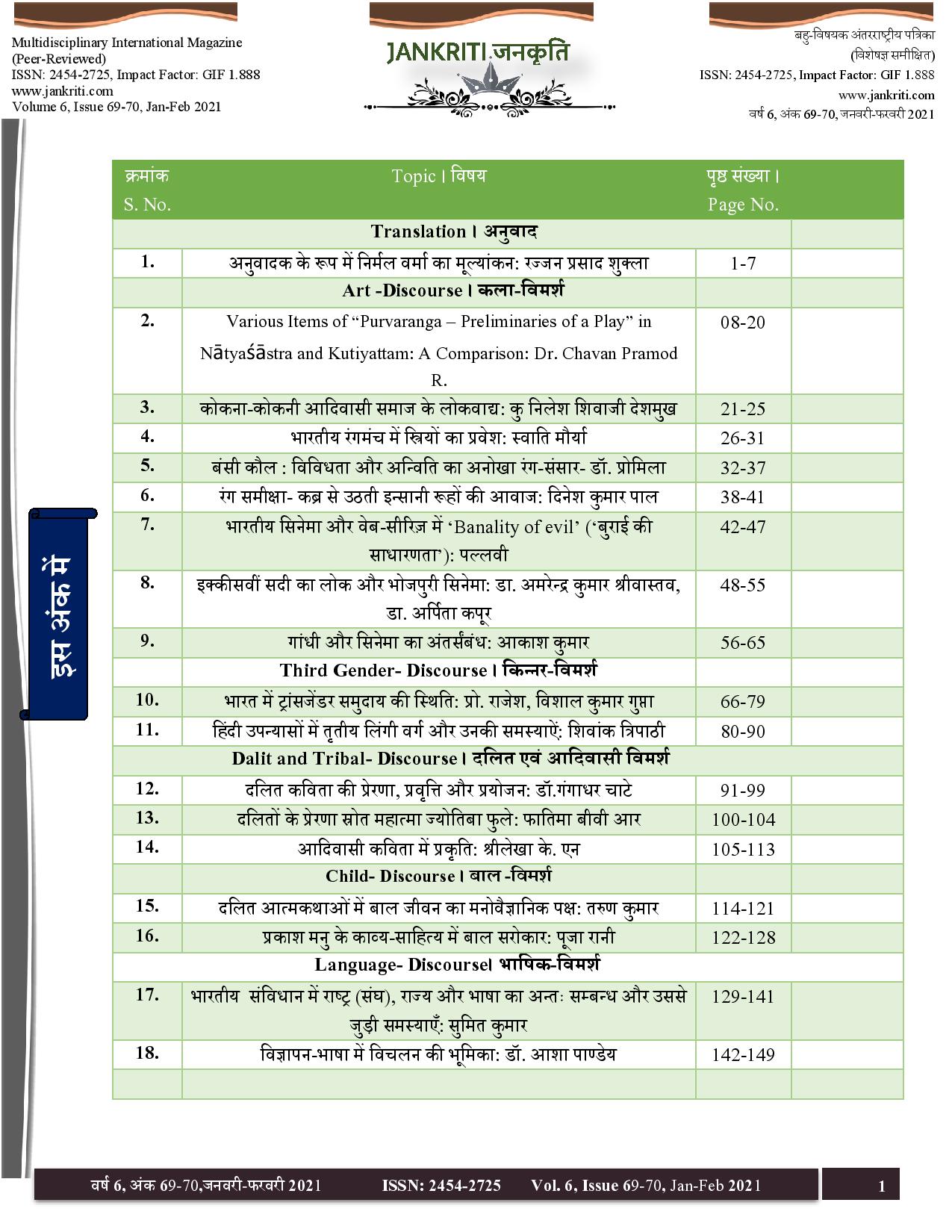 Vol. 6, Issue 69-70, Jan-Feb 2021 वर्ष 6, अंक 69-70, जनवरी-फरवरी 2021